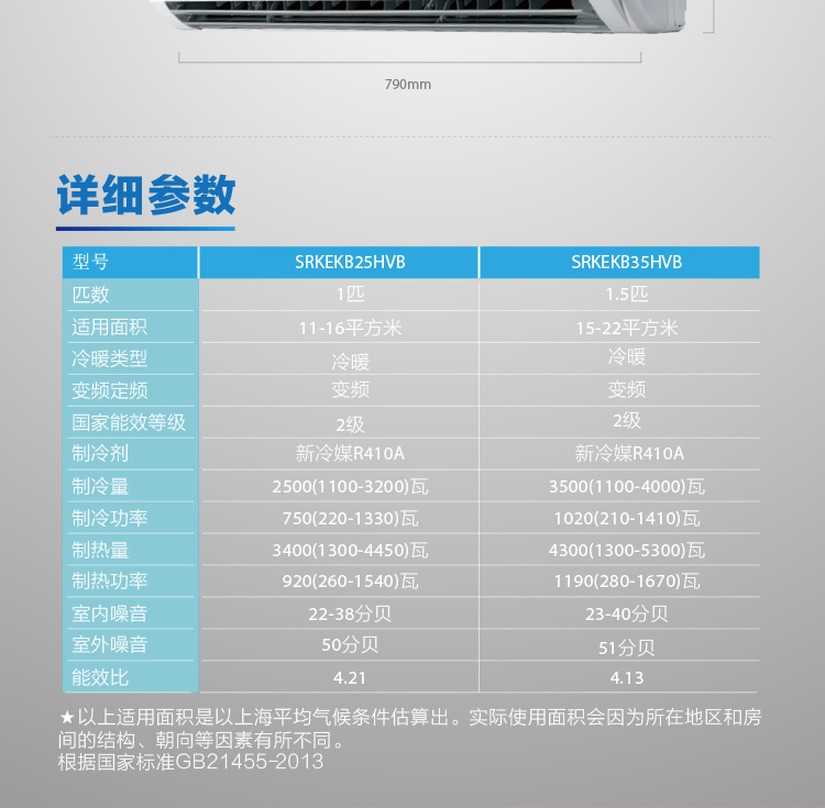 三菱重工 SRKEKB35HVB 1.5匹 挂壁式冷暖变频无氟环保空调